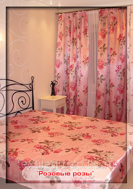 Комплект в подарочной упаковке фотопечать 3D "Розовые розы" (шторы+покрывало+вуаль в подарок) цена со скидкой:2900 обычная цена: 3190