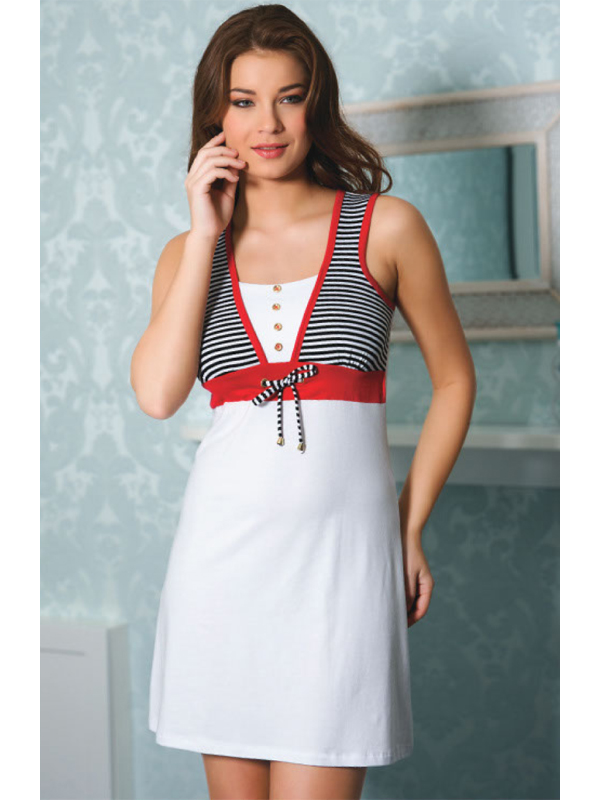 Домашнее платье на широких бретелях.