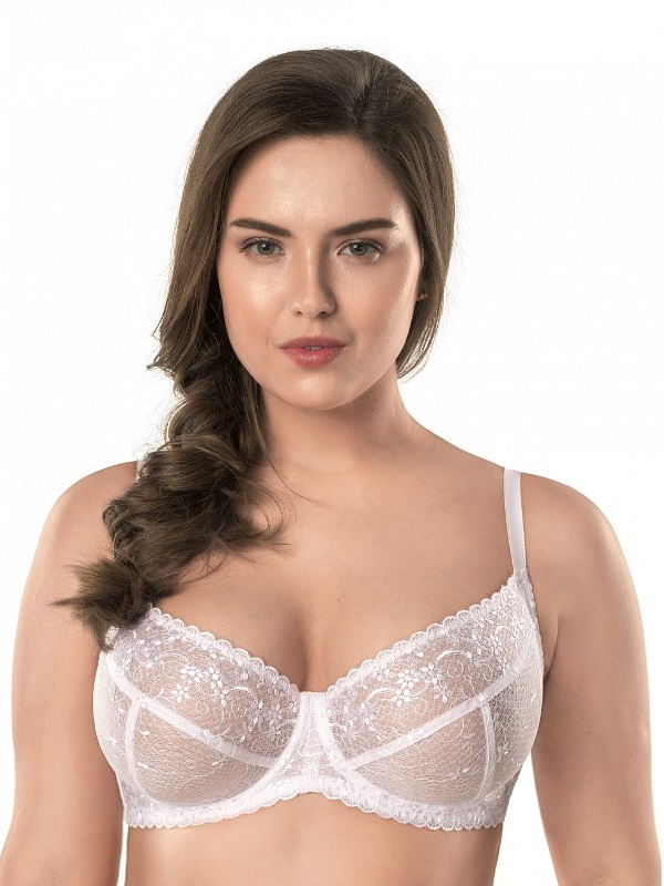 Бюстгальтер с мягкой чашкой на каркасах. Выполнен из вышивки на неэластичной сетке со скрытой боковой поддержкой. Бюстгальтер классической формы превосходно поддерживает грудь. Усиленная боковая деталь. Бретели широкие, несъёмные, регулируются по длине.