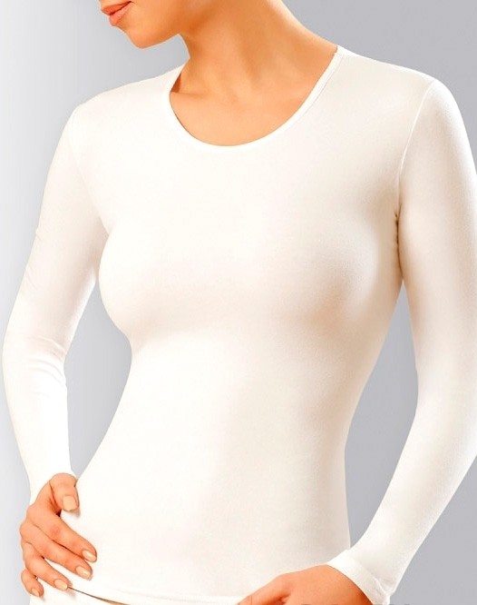 Женская хлопковая футболка с длинными рукавами и круглым вырезом.
